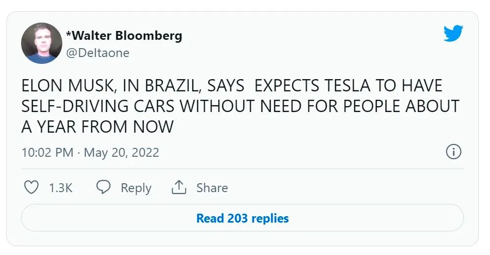早在2015年12月,他就预测将在两年内实现“完全自主”,但之后该时间规划已多次被重新调整。