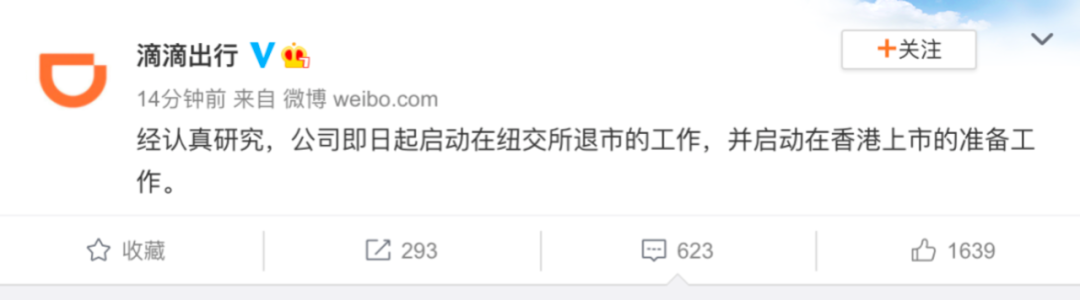 2021年12月3日,滴滴对外宣布即日起启动在纽交所退市的工作,并启动在香港上市的准备工作。