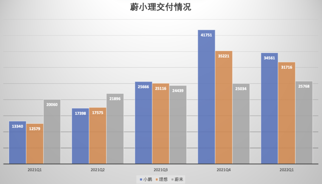 连续几个季度新势力销冠。2022年Q1,小鹏汽车共计交付了34561辆车: