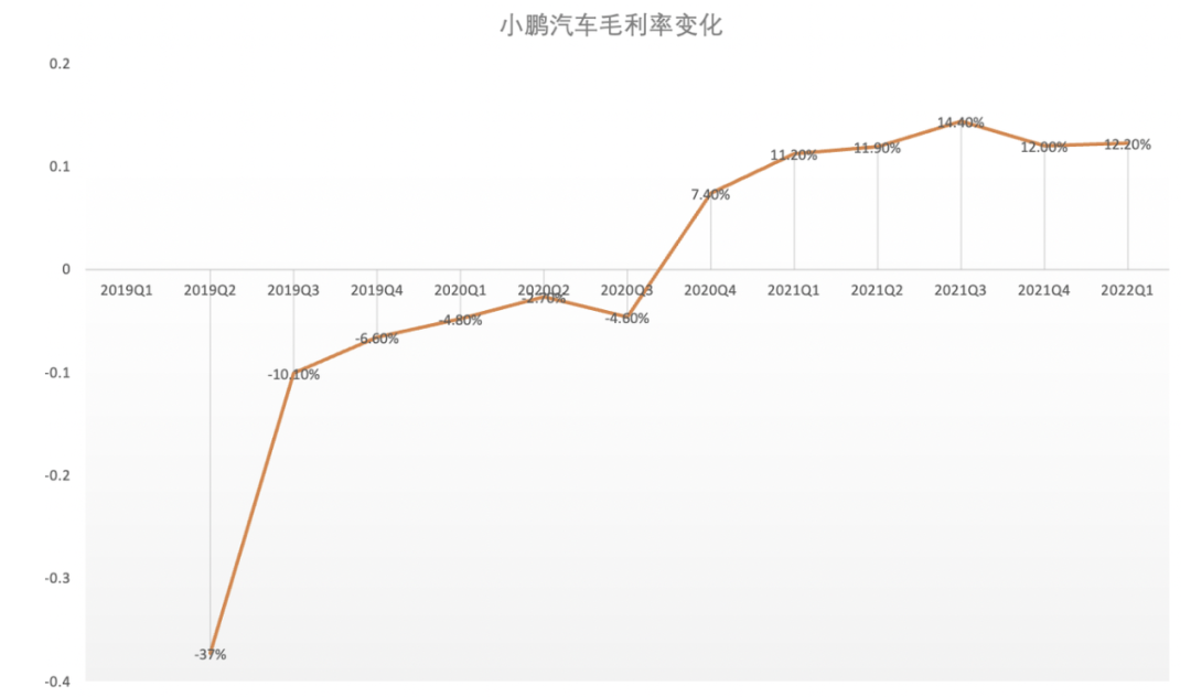 另外,小鹏汽车毛利率长期徘徊在11-15%,2022年Q1数据为12.2%,不出意外的话应该还是三家中最低的: