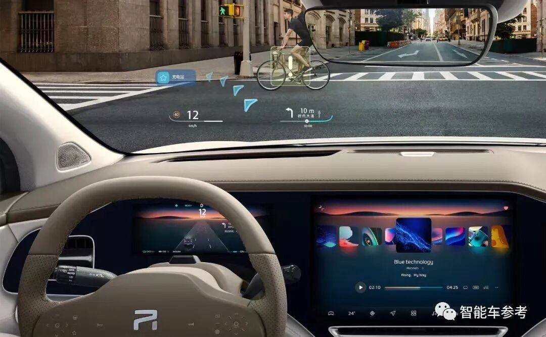 内饰方面,配备10.25英寸全液晶仪表、11.6英寸中控屏以及一套增强现实抬头显示系统(AR-HUD)。