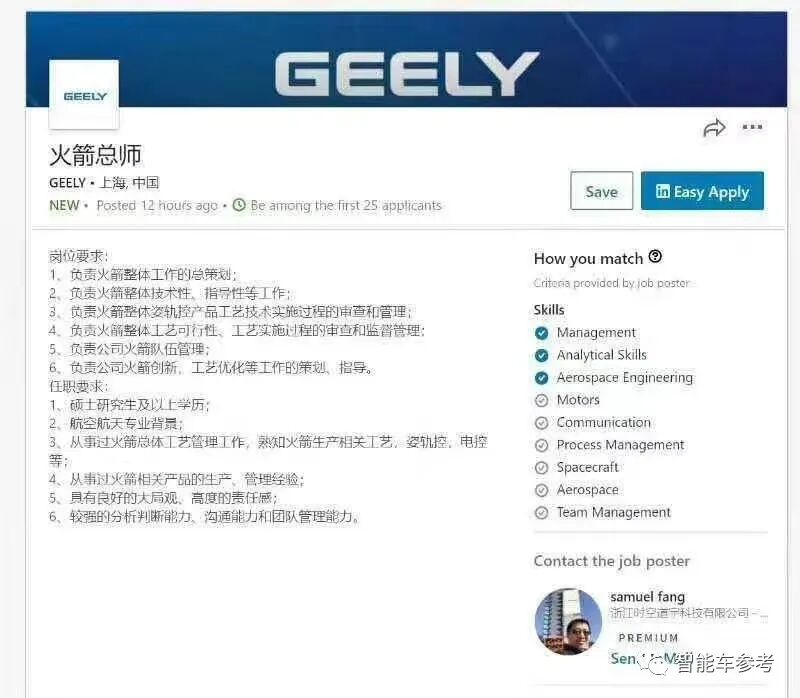火箭总师、火箭结构工程师,都是吉利渴求的硬科技人才。