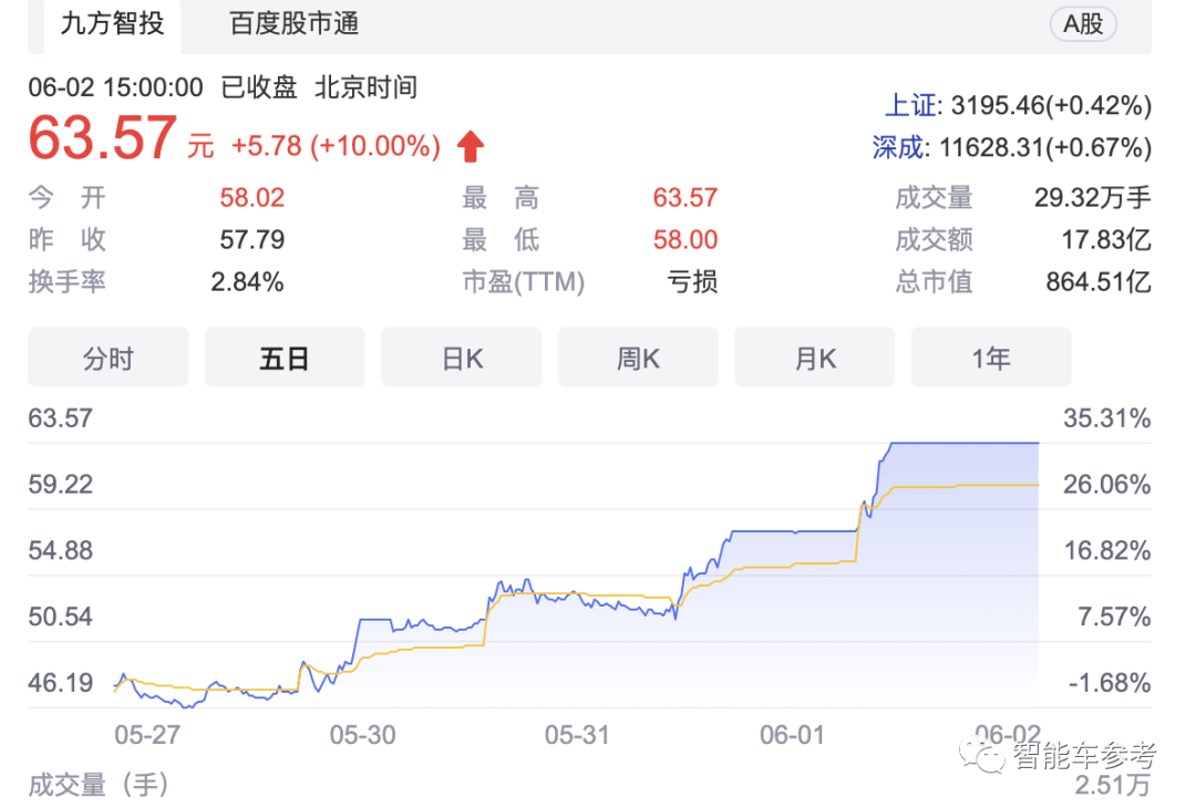 消息透露以来,赛力斯母公司小康股份股价连续两天涨幅达到10%,市值864.51亿,膨胀了近80亿。