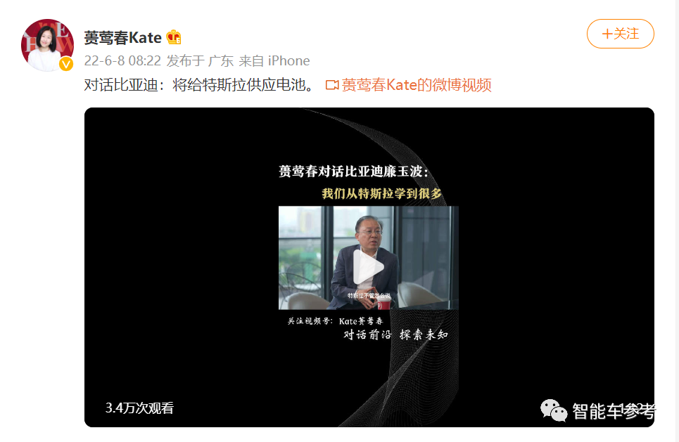 6月8日,比亚迪执行副总裁、汽车工程研究院院长廉玉波在接受CGTN采访时表示,比亚迪马上准备给特斯拉供应电池。