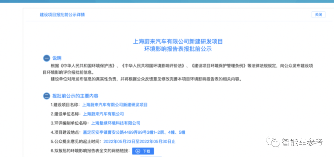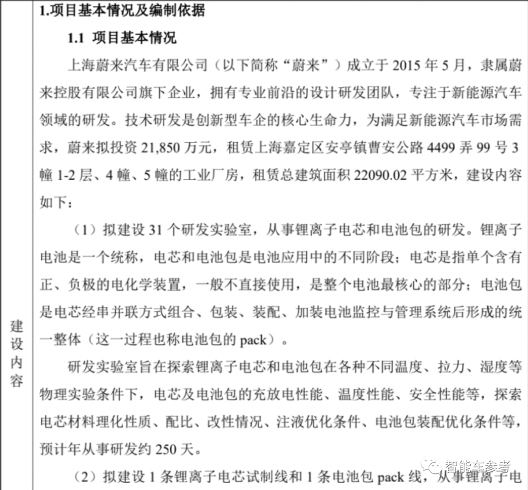 公开消息显示,就在今年5月底,蔚来就被曝在上海成立电池研发基地。项目情况,在蔚来提交给上海企事业单位环境公开平台的报告中,有详细展现。