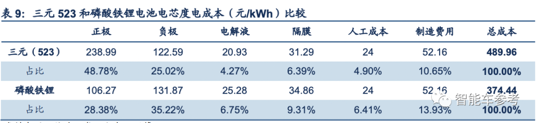 以三元523电池为例,信达证券数据显示,包括正负极材料、电解液、隔膜等在内的电芯成本,可以占到电池总成本的84%以上。