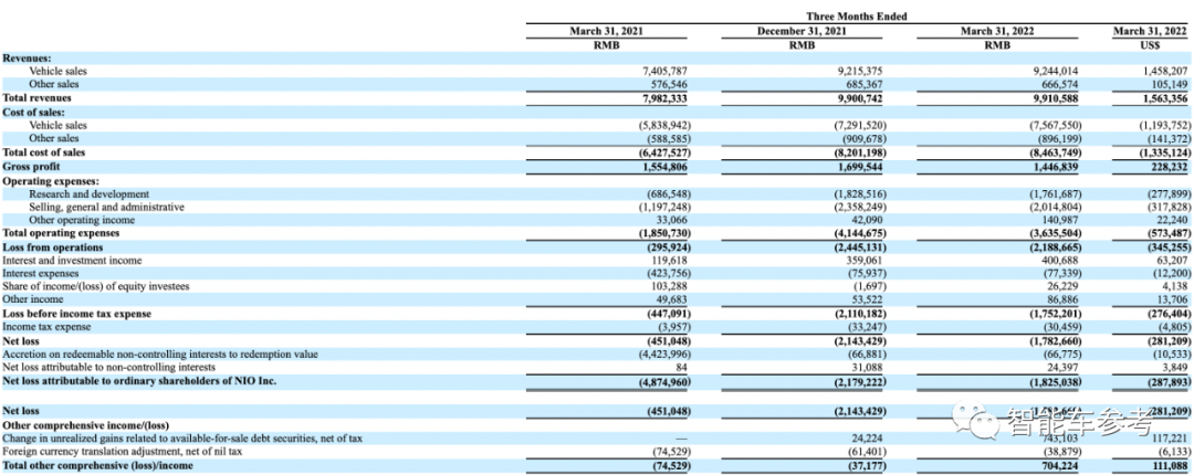 销售成本为84.637亿元,同比增长31.7%,较上个季度增长3.2%。销售成本较2021年第一季度及2021年第四季度有所增加,主要归因于2022年第一季度交付量增加。