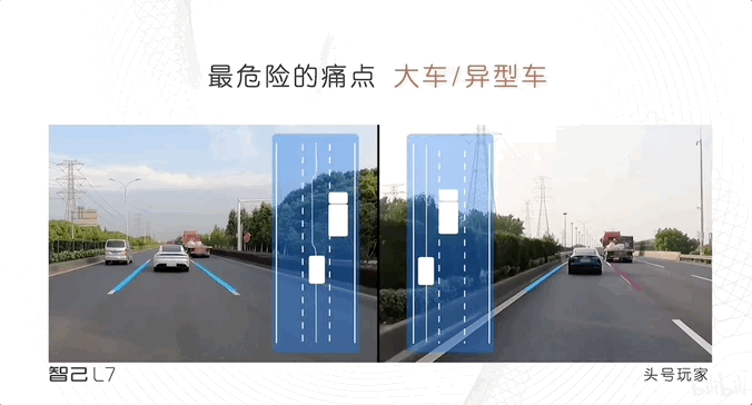 “头部玩家未能及时识别,人为接管”、“同一场景,头部玩家直接退出智驾功能”、“L7比头部玩家提前800ms识别,抓住黄金救命时间”、“实力已超越头部玩家”….
