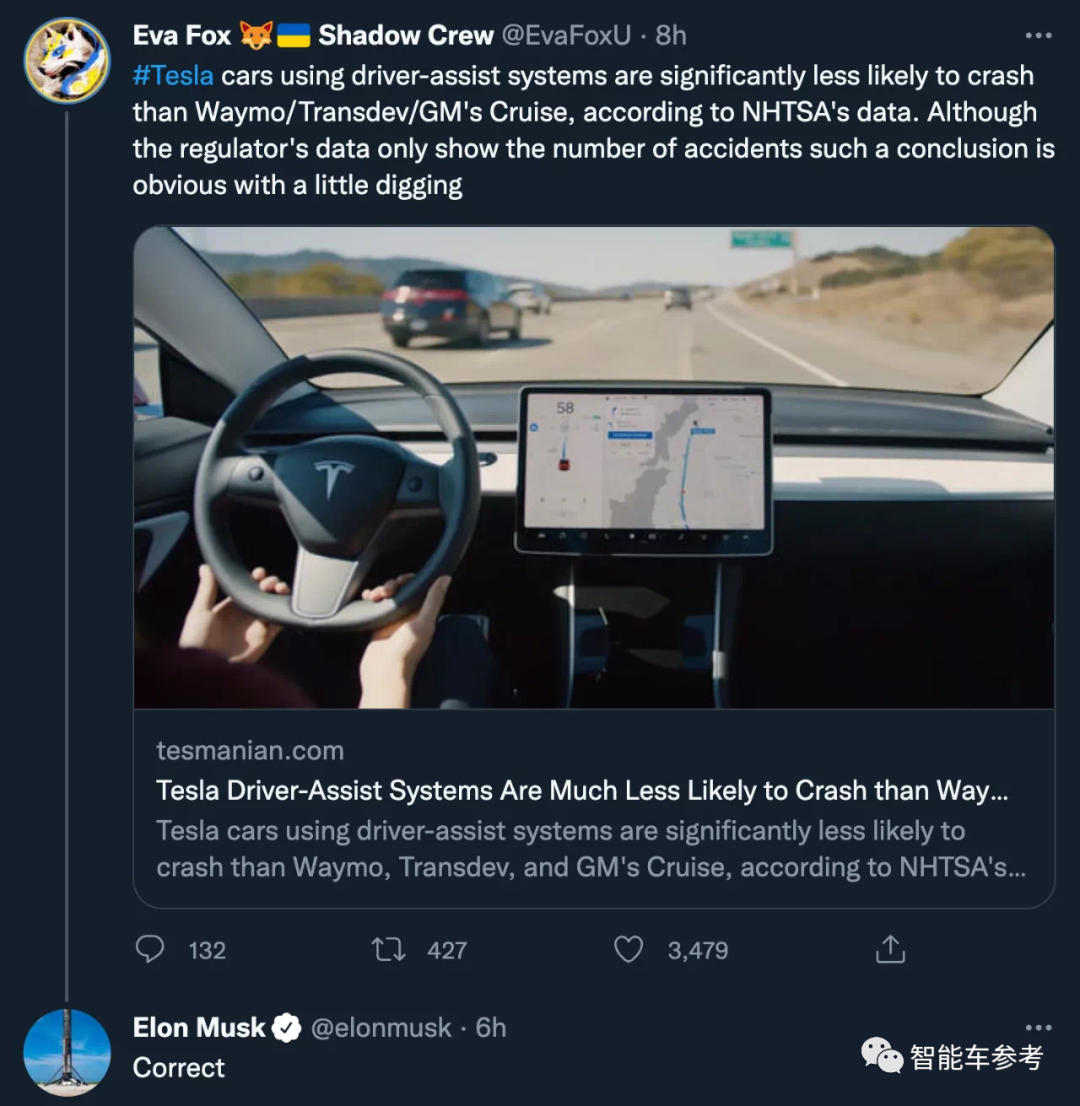 对此,马斯克在推特上回应,NHTSA的结果,正好说明了特斯拉自动驾驶的安全性。