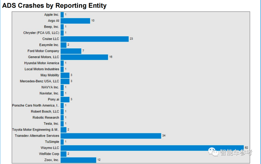NHTSA这样的统计方法是否科学合理现在还没有定论,但报告中除了对特斯拉,也试图用这样的方法对整个自动驾驶、智能汽车行业的安全情况进行统计描述。