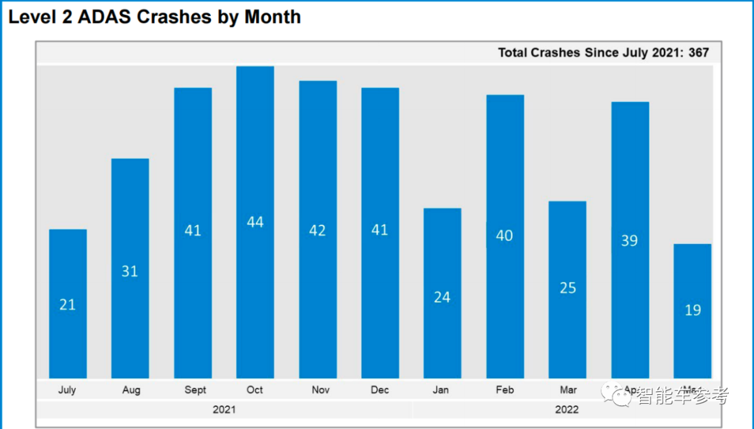 NHTSA这份报告,直接划定具体时间范围,比的是事故发生总次数,而且同台比拼的对象是众多明确在L2级的车厂。