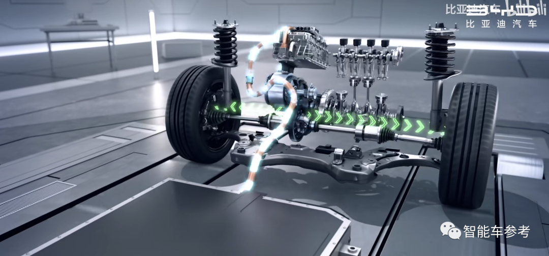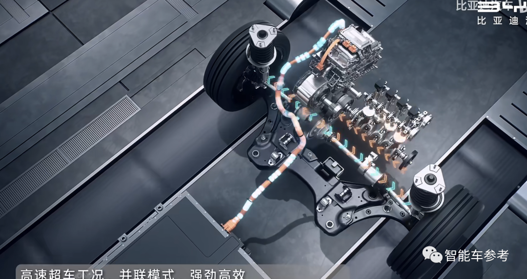 p for 「powerful」,基本结构原理和DM-i相同,只不过采用三电机驱动以及更大的电池容量。