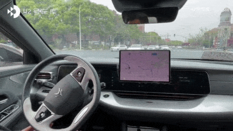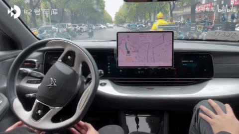 一路参照汽车的中控大屏显示,对移动行人、车辆和二轮外卖摩托的识别,都相对精准。