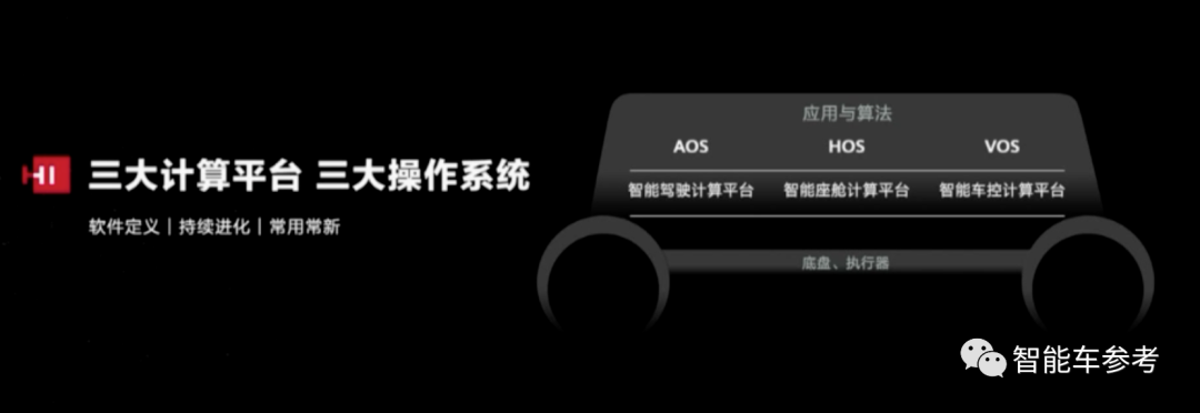 华为HarmonyOS智能座舱车机操作系统、华为AOS智能驾驶操作系统、华为VOS智能车控操作系统。
