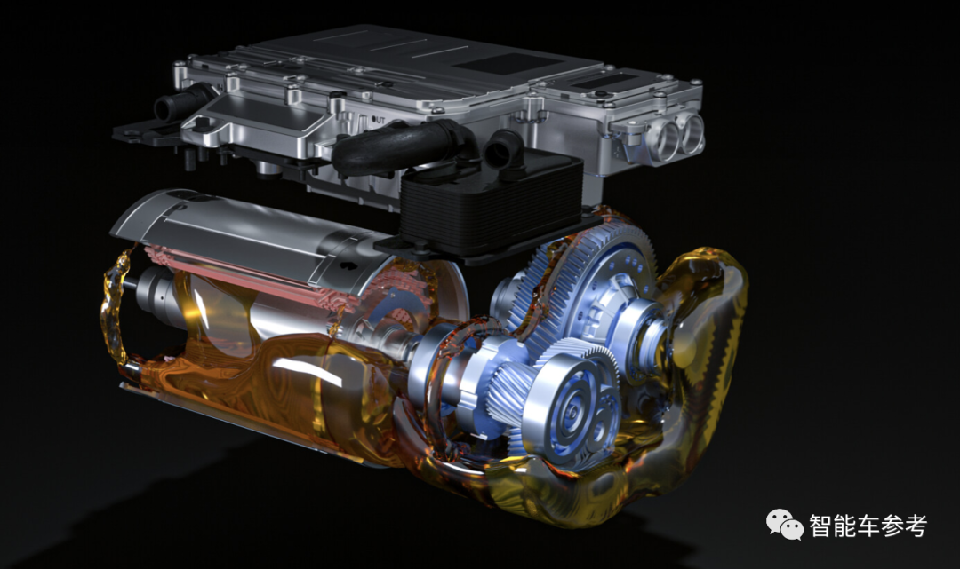 首先是电驱。华为DriveONE三合一电驱单元,集成电机、电控及减速器,同时集成了油冷散热。