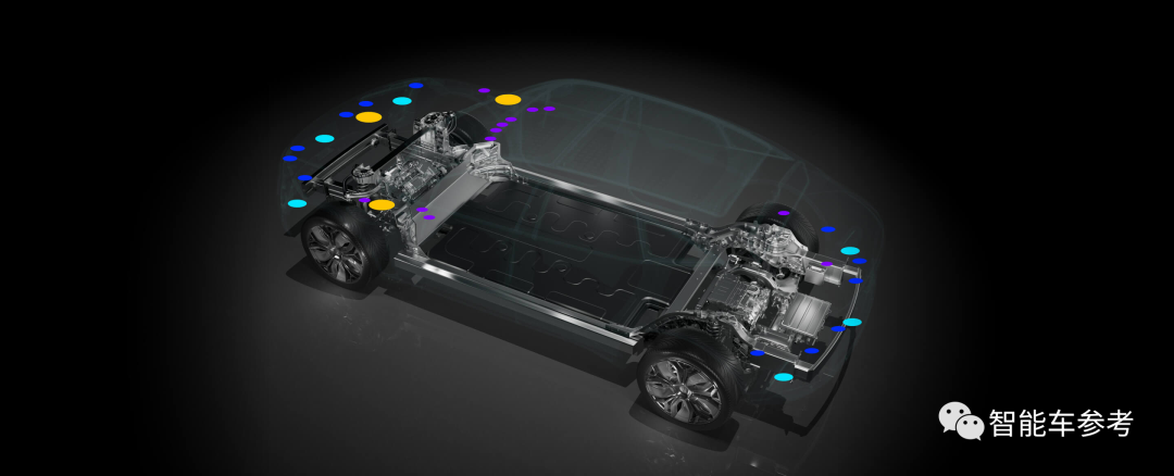 34颗传感器,含3颗激光雷达、6颗毫米波雷达、13颗高清摄像头、12颗超声波雷达。