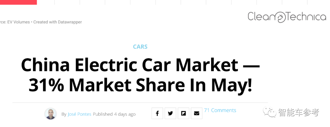 首先,报告表示今年5月,中国电动车的市场份额达到了 31%,其中纯电动车占到23%。