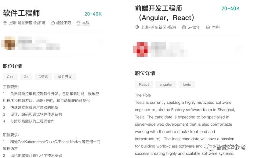 但目前从招聘信息来看,特斯拉关于智能互联和自动驾驶等核心技术岗位的招聘依然集中在国外,在国内主要的人才需求是软件工程师和前端工程师等,月薪范围为20-40k。