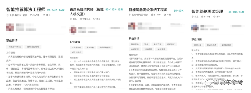 理想汽车给智能驾驶舱高级系统工程师岗位,开出的月薪是30-60K,智能驾舱测试经理月薪为35-60K。