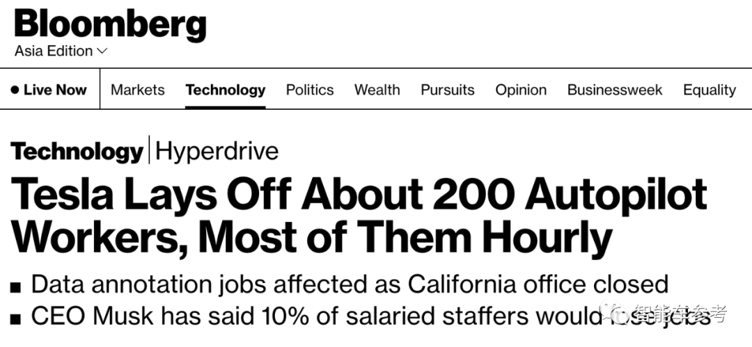 据彭博社消息,某知情人士透露特斯拉已关停其位于加州圣马特奥的办公室,裁掉自动驾驶部门将近200名员工。