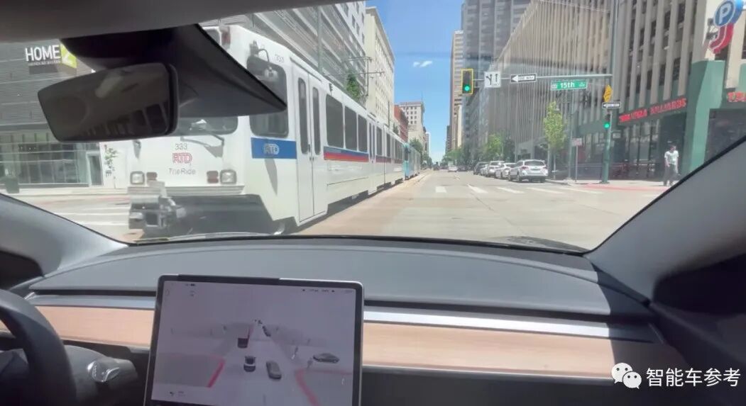 语气有些平淡、无可奈何,“我的车差点就要撞上这台电车,这真的不太行,我要上报给特斯拉。”