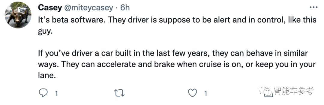 不过也有态度比较温和的:“还只是测试版,司机应该保持警惕,随时接管车辆。”