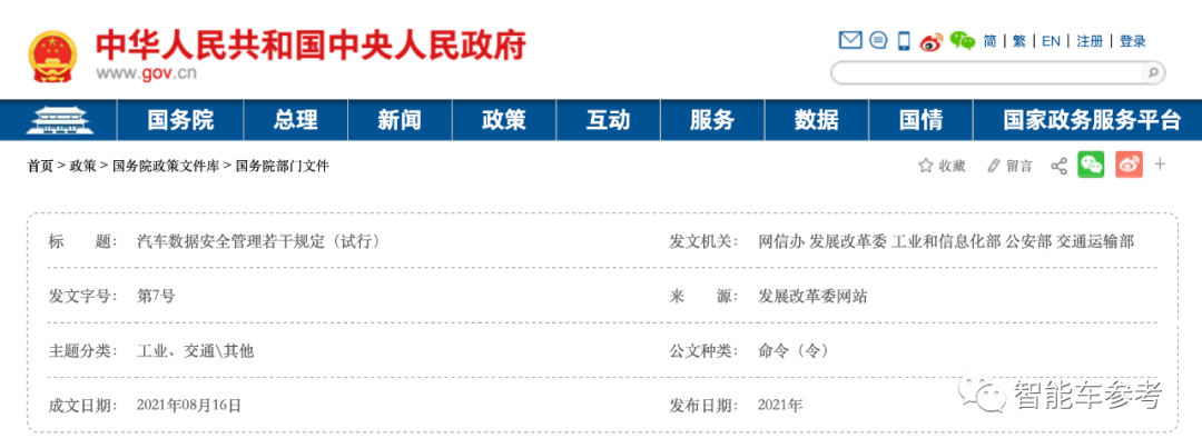 《汽车数据安全管理若干规定(试行)》,是中国第一部针对汽车数据安全制定的法规,由国家网信办、发改委、工信部、公安部、交通运输部联合发布。
