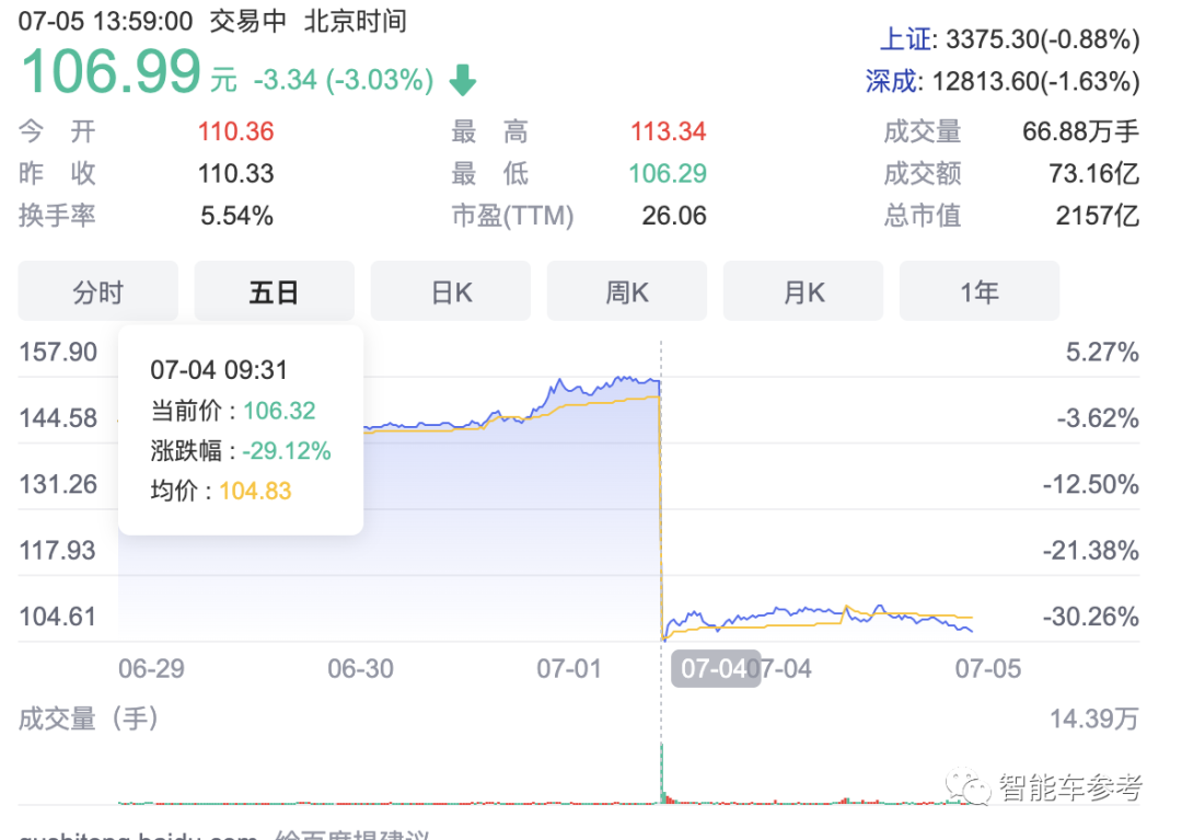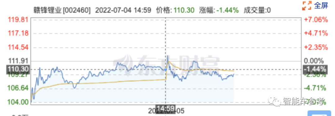 公告披露以后,7月4日赣锋锂业一度跌7.07%,但随后跌幅收窄至1.4%,截至收盘报110.33元/股,总市值2066亿元。