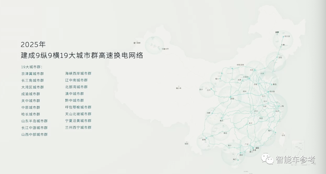 高速换电站,2025年覆盖国内9纵9横,19个城市群。