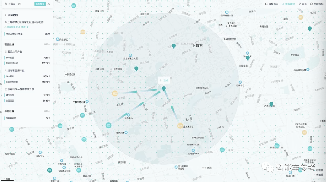 系统会自动评估换电站布置的预期,包括客流量,以及对周围换电站的影响