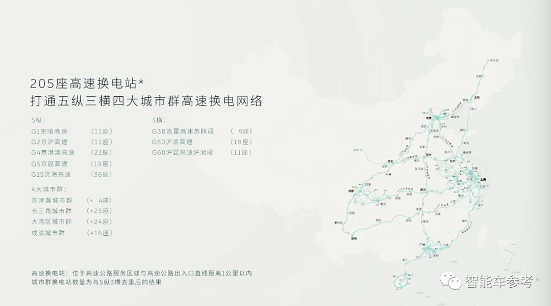 完全覆盖——从任一方向出高速,150公里必有一个换电站。