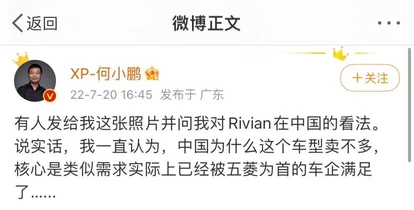 后来有人问何小鹏怎么看待这款车,怎么看待电动皮卡。