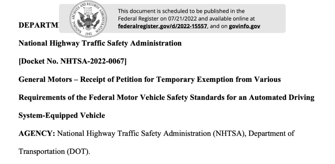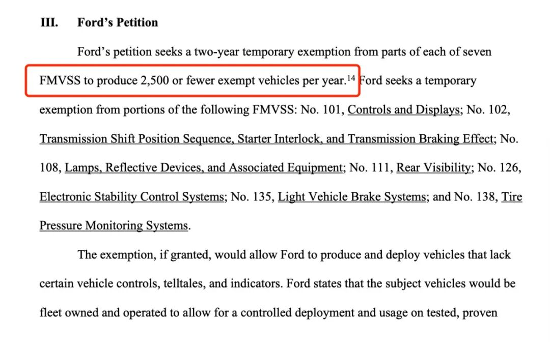 通用、福特提交的上路申请,最近被美国国家公路交管局 (NHTSA)公开。