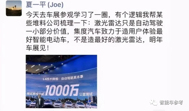 “堆料公司”、“智能电动车不是造最好的激光雷达”…