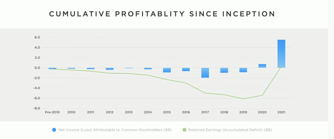 不过好的是,我们现在已经实现盈利,账上有了现金留存(绿色曲线),这对特斯拉来说是至关重要的。