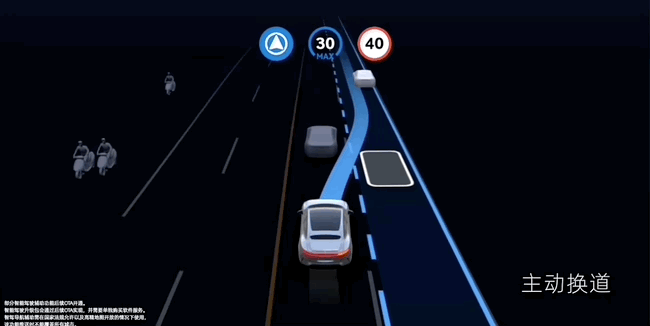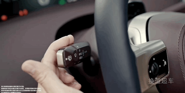 也就是说,如果前向有龟速车、大车等等因素,需要驾驶员手动拨转向杆,系统确认侧向车道情况允许后才会变道。