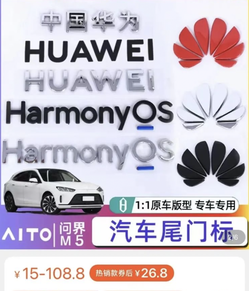 最近,随着越来越多华为参与的汽车进入市场,电商平台出现了零售华为车标的业务。