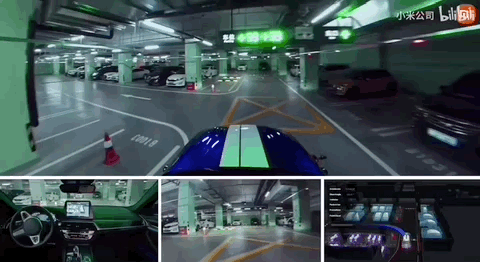 小米展示的,并不是常规的识别车位泊入,而是从停车场入口就开始的记忆泊车功能: