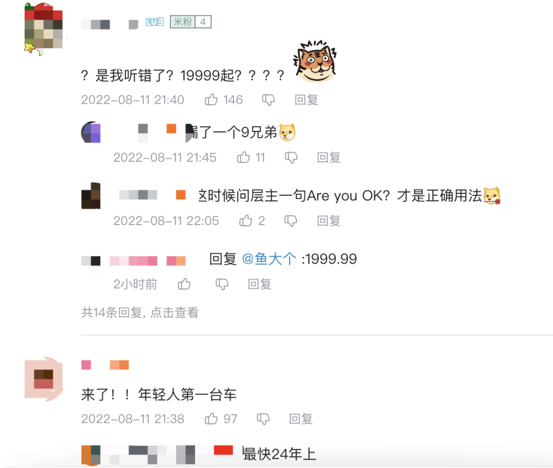 当然,赞赏的也有。不过最多的,还是期待雷总能带给年轻人他们第一辆智能车。