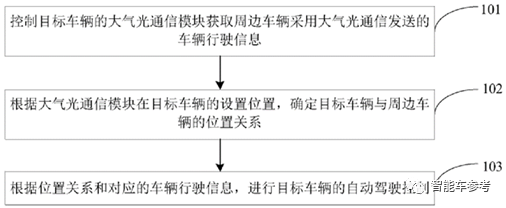 第一步,通过控制目标车辆的大气光通信模块,获取周边车辆采用大气光通信发送的车辆行驶信息。