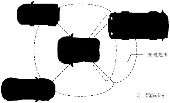为了提高精确度,目标车辆前方、后方、左侧、右侧等方向行驶的车辆都包含在周边车辆的概念内,并不局限于周边某一个方位的一辆车。