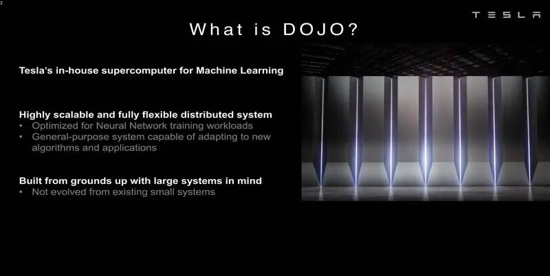 所谓Dojo,是特斯拉自研的超级计算机,能够利用海量的视频数据,做“无人监管”的标注和训练。
