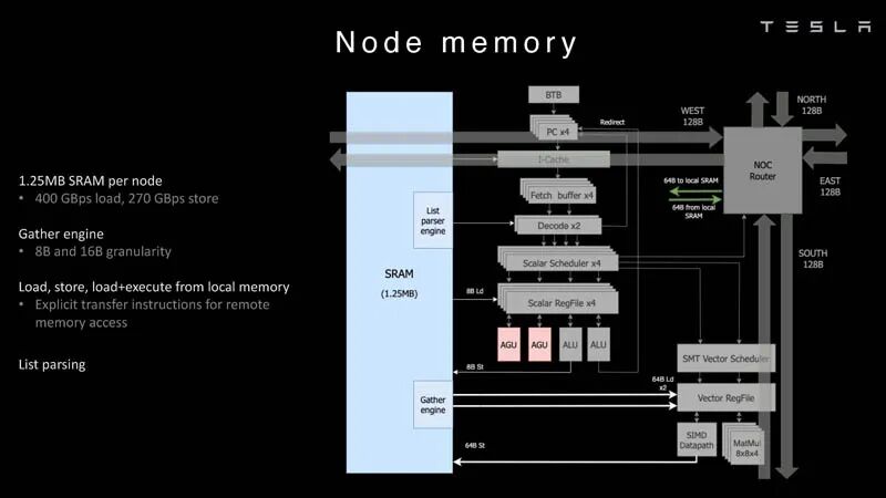 芯片有明确的指令,可以将数据移入或移出Dojo超算中其他内核的外部SRAM存储器。