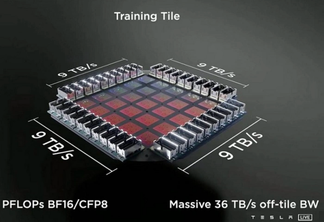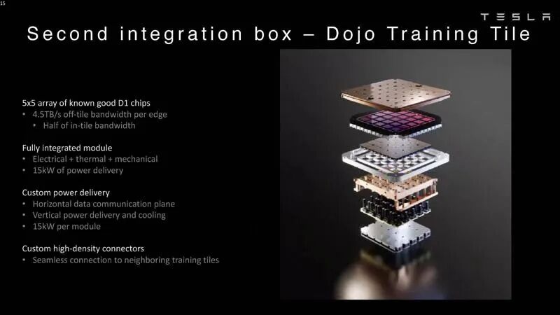 D1芯片测试完成后,随即被封装到5×5的Dojo训练瓦片(Tile)上。