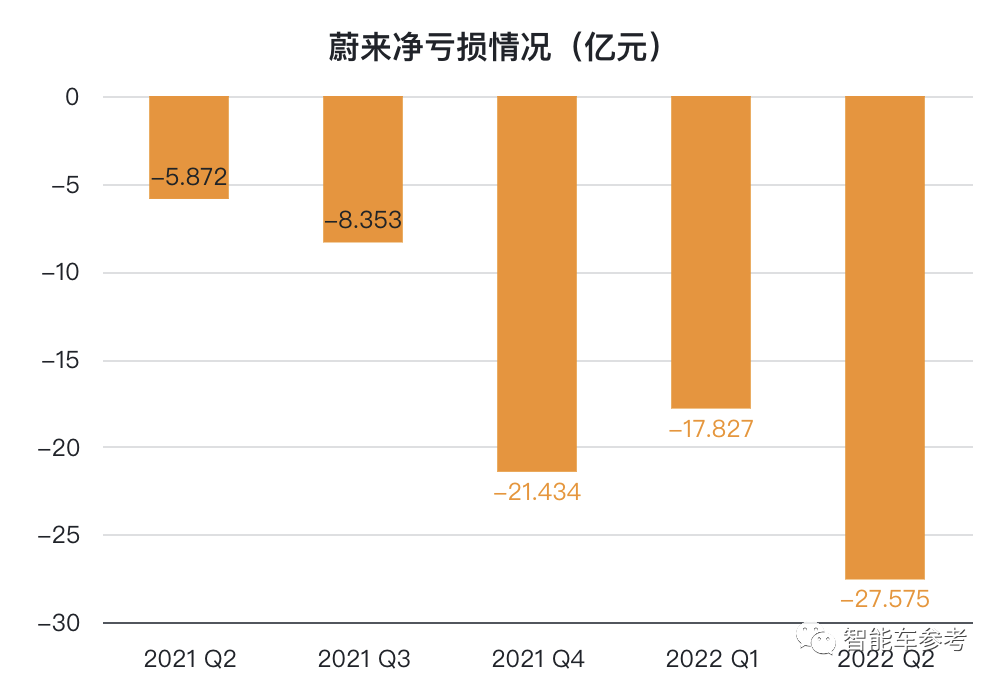 2022年2季度,蔚来财报透露一共卖了2.5万辆车,也就是亏掉了25亿。