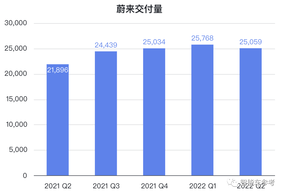 根据蔚来官方披露的第二季度业绩报告,蔚来2季度的交付准确数字是25059辆,在疫情影响供应链严重的情况下,守住了基本盘。