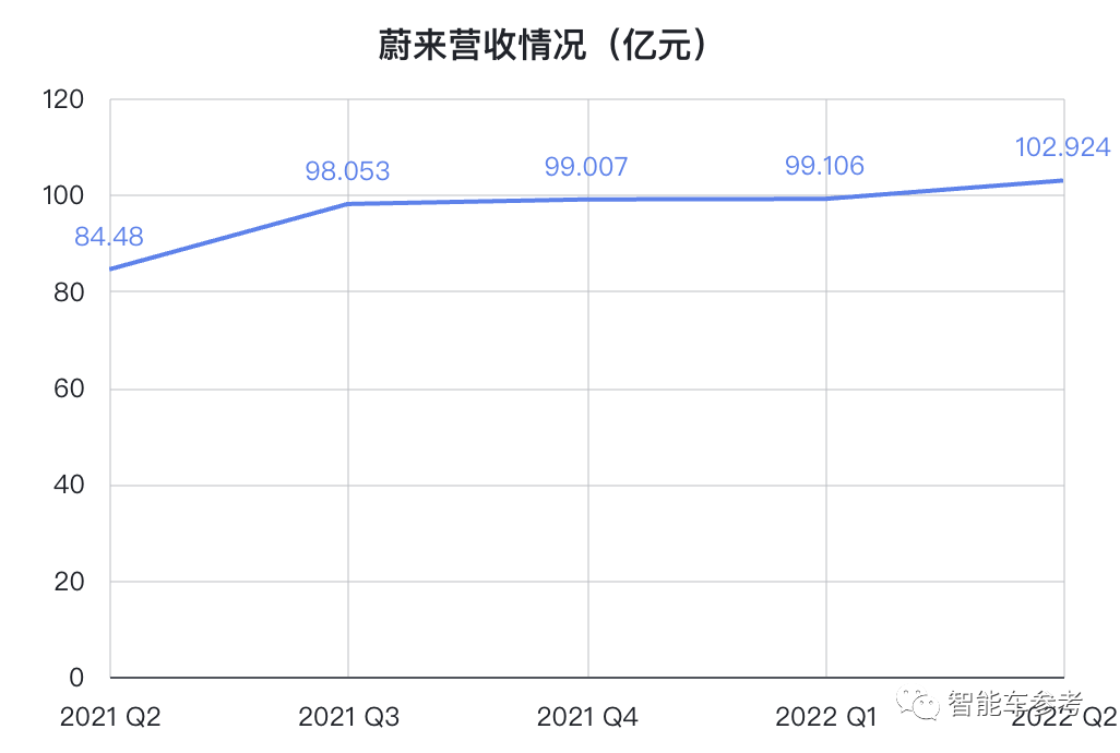 整体营收上,蔚来2022年2季度实现102.925亿元,同比和环比均有上升。