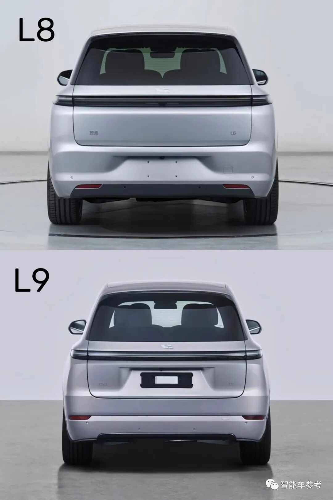 从外观图来看,L8就像缩小版的L9,长度短了138mm,宽度窄了3mm,高相同,轴距短了100mm。