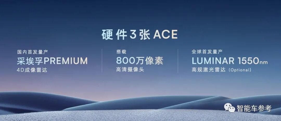 第三个不同点,是4D毫米波成像雷达,全球首发,来自采埃孚。