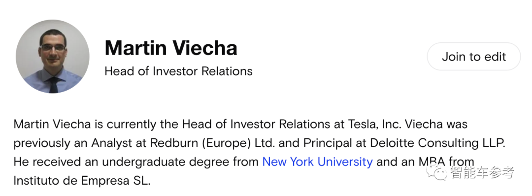最新披露,来自特斯拉投资者关系负责人马丁·维查(Martin Viecha)。